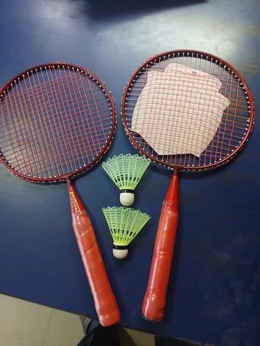 A badminton racket is a lightweight, handled piece of equipment with an open, stringed hoop, used to strike a shuttlecock in the sport of badminton.